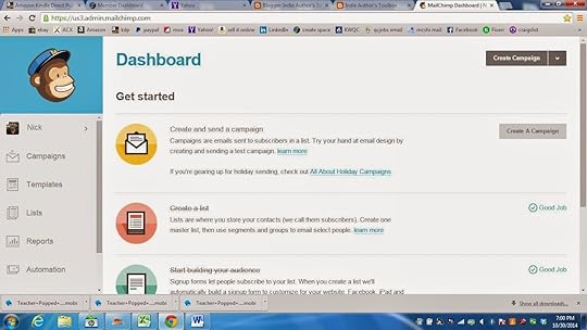 I set up a list management account with Mail Chimp, and added links to all of my books, and to both of my blogs. My goal for the next year is to move from zero to a minimum of twenty-five hundred subscribers for my mail list. To do that, I'm going to concentrate on doing more free giveaways instead of using Countdown Deals to drive sales. I'm also thinking about offering several of my books as perma free to give readers a free entry point into my works.