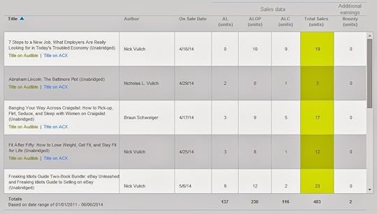 Final thought. I listed twenty-three audio books for production in the same week. As a result I went with the royalty share option on all of them. It saved me money up front, and it allowed me to get all the projects going at the same time. If I had it to do again, I would cherry pick my books, and pay for the production of my bestsellers up front. Over the long haul I would probably make thousands of dollars more in royalties.