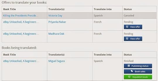 The translations page is divided into two sections – Offers to translate your books, and books being translated.
