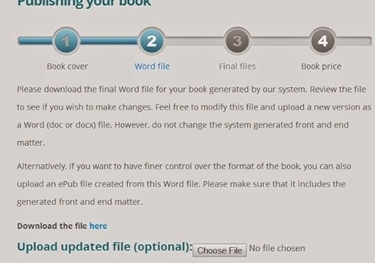 To list your book, click on Create new project. You’re asked to give your project a name. It can be the name of your book or another name you want to assign to it. The next screen that pops up asks you to upload your manuscript. You can use the same MS Word file you submitted to Amazon, just be sure to remove any references or links to Amazon in it.