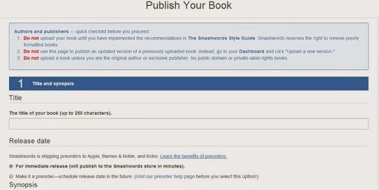 Once you have your manuscript and cover ready publishing on Smashwords is easy. Click on publish in the author dashboard. Most everything is self-explanatory.