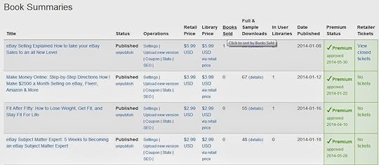 You can check the progress in your dashboard. The second to the last column at the far right of each book summary shows the premium status. When your book has been accepted it will show premium approved, and the date of approval. If there is an issue getting approved, you will be able to see the error code in the next column – retailer tickets. As soon as you correct the error you can resubmit your book.