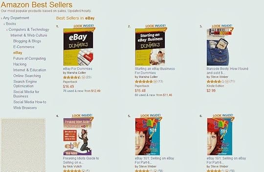 Below you will see a screenshot for the bestsellers list in the eBay category. The books are presented twenty to a page. You can see it is labeled Amazon Best Sellers, and just before it begins showing thumbnails of the books, it says Best Sellers in eBay.