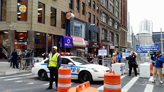 Across from Zuccotti ParkYesterday was the 13th anniversary of the 9/11 attacks. I've attended the observances in New York twice: the 9th and 10th anniversaries. This year, I attended again. And my, how things have changed.On the two previous occasions I was here on 9/11, there were accommodations for the general public (i.e., anyone not a family member): loudspeakers on Broadway and around the site so the crowds could hear the prayers and names read. On the 10th anniversary, Jumbotrons were set up so we could watch, as well. This year...not so much.