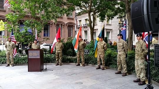 I had to content myself with attending the ceremony at the Queen Elizabeth II September 11 Memorial Gardens, near Wall Street. The Consuls General of the UK, New Zealand, Canada, Jamaica and India made brief, eloquent remarks. It's respectful, quiet and welcoming to all.This was the first year the city did not oversee the observances at the Memorial. Maybe that's why it was so very different. I don't want to believe it was a deliberate decision - shutting out the public.