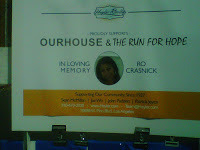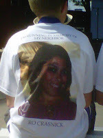 I noticed one group in particular. A sign on the route mentioned Ro, and there were maybe a dozen or so who wore her picture on their backs, listed as ‘friend’ or ‘neighbor’. I asked one woman if she worked with Ro. No, she said, a neighbor. But her whole face lit up at the mention of her friend’s name. We are two weeks from the first anniversary of Ro’s death, and I’m sure the timing of the Run for Hope was important to them.