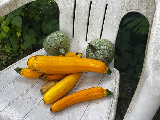 Mijn moeder had die bolcourgettes zo mooi gevonden. Ik hoor haar in mijn hoofd een kreet slaken, zoals ze deed als ze iets heel leuk vond (en het mentaal goed met haar ging). En dan eindeloos willen bespreken hoe hé ze kunt vullen en met wat.