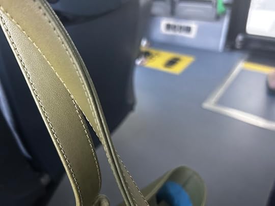 PS Ik maakte snel bovenstaande foto vlak voor ik de bus uit stapte want ik dacht meteen: hier ga ik over bloggen vanavond! Als je goed kijkt, zie je per ongeluk nog net een vervaagde teen van de beller in kwestie. Maar ik ga er van uit dat die niet als identificerend persoonskenmerk kan worden gezien.