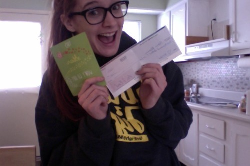 I just got home from the gym so I look gross but guESS WHO JUST GOT THEIR CHECK FROM TSWGO!? With an awesome note written from Lori. This is so great. I’m so happy. PEACE OFF, MEDICAL BILLS. BUH-BUY DEBT. (Well except for student loans but THAT DOESN’T MATTER RIGHT NOW)