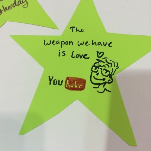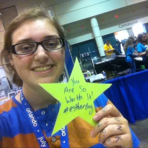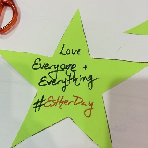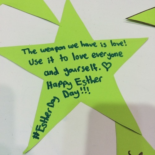 The DFTBA booth at LeakyCon is prepping for Esther Day by having attendees make paper stars with messages of love. Show us how you’re counting down to Sunday in the Esther Day tags!