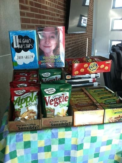 A glorious teacher got us funding for our library lunch program at the school with a grant! Look at all the awesome (and healthy) snacks we have for students to munch on while we talk about books!