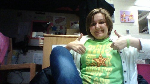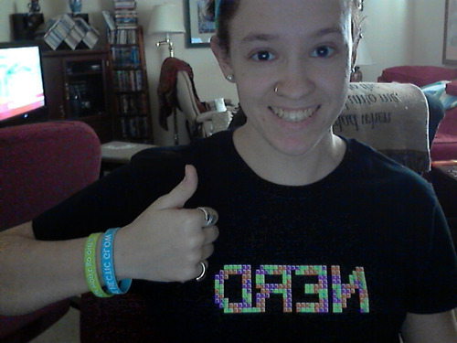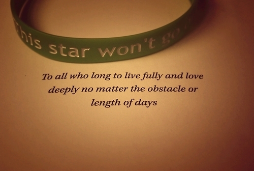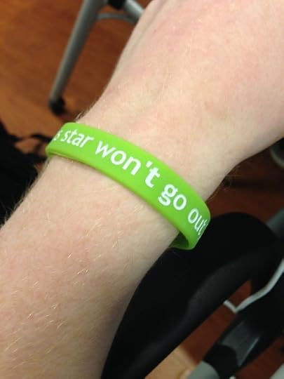 My new This Star Won’t Go Out bracelet and Nerdfighter shirt came today! Very happy :D