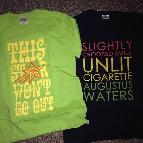 Green: This star won’t go out, ordered at the same time as the shirt :)Blue: The Hectic Glow, from the special edition John Green reading TFiOS audiobook set