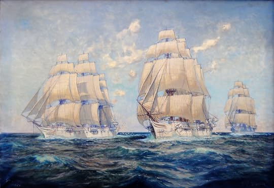 SMS Stosch, Stein, and Gneisenau of the Bismarck-class under sail, by Alexander Kircher