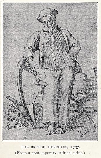 According to a Late-Victorian source (The British Fleet by C.N.Robinson, 1894), the earliest known depiction of a British blue-jacket was “The British Hercules”, dated 1737. He holds a scroll that says “I wait for orders” and this may refer to the two-years of fruitless negotiations with Spain which were then in progress – leading eventually to the splendidly-named War of Jenkin’s Ear. The most memorable exploit of the Royal Navy in this conflict was Anson’s voyage around the world in HMS Centurion.