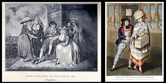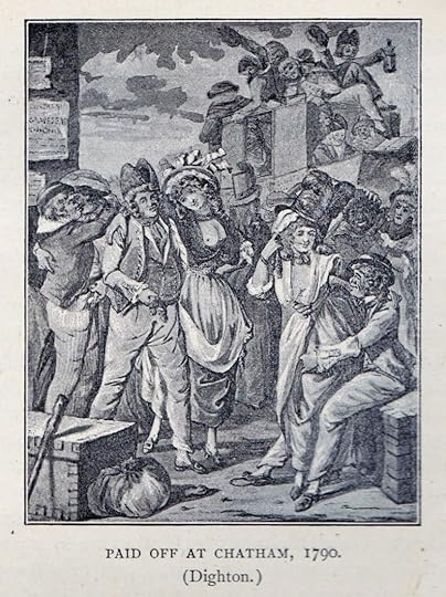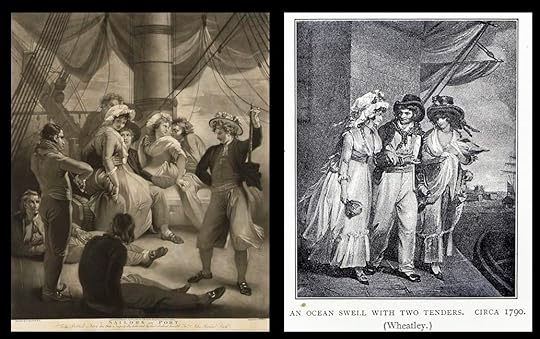 Pay which was accumulated on long voyages – or prize money – tended to be spent in very short order once crews finally came ashore. The respected painter Robert Dighton (1752-1814) and the cartoonist Isaac Cruikshank (1764-1811) depicted just how fast and furious the spree could be – see below.