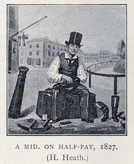 A sadder commentary on the war’s aftermath, when many men were discharged and officers put on half-pay, shows a mid-shipman sitting on his sea-chest and reduced to working in the street as a shoe-shine.