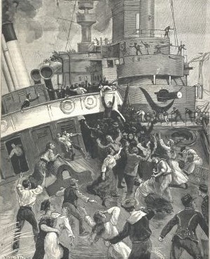 The Hoche’s ram bit deep into the Maréchal Canrobert, all but severing her in two. Naval disciple prevailed however and the shattered – and sinking – remains were secured to the battleship to facilitate transfer of survivors and boats were also launched. Despite these efforts the Maréchal Canrobert disappeared within eight minutes of the collision. The resulting death-toll amounted to 107. Blame for the disaster was placed on the captain of the Maréchal Canrobert.