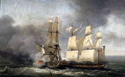The Bayonnaise and HMS Ambuscade action, 1798On my blog I have dealt several times with single-ship actions during the Age of Fighting Sail, the protagonists being mainly British and French, though the Americans do figure in 1812-15. In most cases British victory over the French seems to have been all but pre-ordained, for the Royal Navy had reached a peak of professionalism in this period and the French officer corps had suffered badly in the revolution, a setback from which it never fully recovered. It is therefore somewhat of a surprise to learn not only of a French vessel, the Bayonnaise capturing a British one, HMS Ambuscade, in a single-ship action, but also that the French vessel was significantly smaller and less powerful.