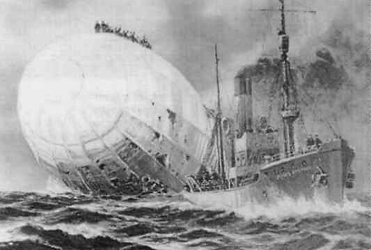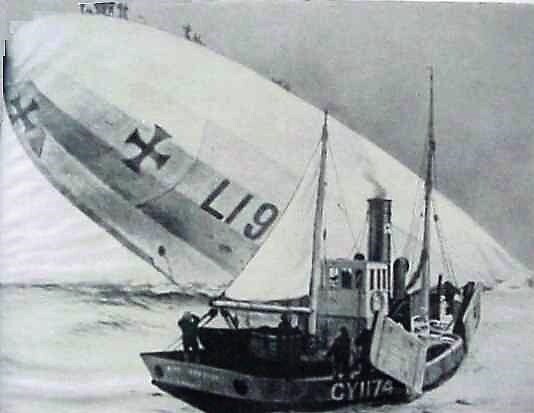 The airship was still afloat, with her sixteen-man crew clustered on top. They had fired flares during the night and these drew the attention of a British fishing vessel, the civilian King Stephen steam-trawler, commanded by a Skipper William Martin (1869–1917). Hope of rescue rose as the English-speaking German airship captain hailed the King Stephen and asked for his crew to be taken aboard. Skipper Martin of the King William refused, on the grounds that his own unarmed nine-man crew could be overpowered and his vessel taken to a German port. Pledges by the German captain of honourable behaviour and offers of financial reward did not shake Martin’s resolve. He did however undertake to report the airship’s location to any British warships he would encounter. He was to meet none and the incident was not reported until the King Stephen docked at the fishing port of Grimsby on the British East coast. The weather had been worsening as she left the L-19. No trace of the airship was found thereafter by searching British warships though several more messages in bottles and the body of a single crew member were later washed up.