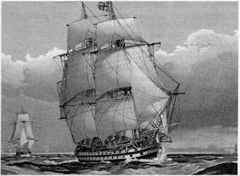 HMS Mars, a classic “74”. HMS Venerable was generally similar