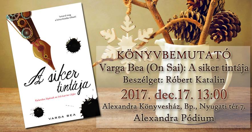 (Egyéb: Aki nem tud jönni a könyvbemutatóra, de dedikált könyvet ajándékozna karácsonyra, azt szeretettel várom dec. 22-én, pénteken, amikor lesz még egy dedikálásom az egyik Alexandra boltban. Figyeljétek az On Sai Fb oldalt!)