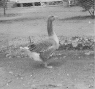 The huge goose thought it was the watch dog. It would also chase me and peck at my bottom.