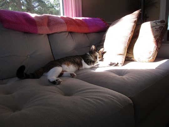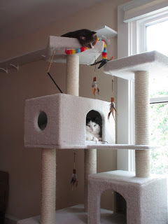 This has been a momentous year in my writing life, all of it fueled by plenty of coffee and quiet and supervised by these two. That's Cricket up on top and Tina down below, hanging out in the cat tree that sits next to the window near my editing chair. My computer is a few steps away, so the cats have taken up residence in this small part of the house, in order to keep an eye on me while I write. It's their job, you see. It's what cats do.