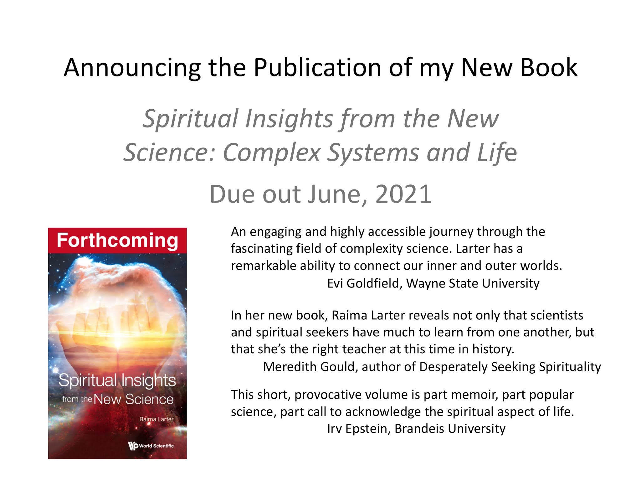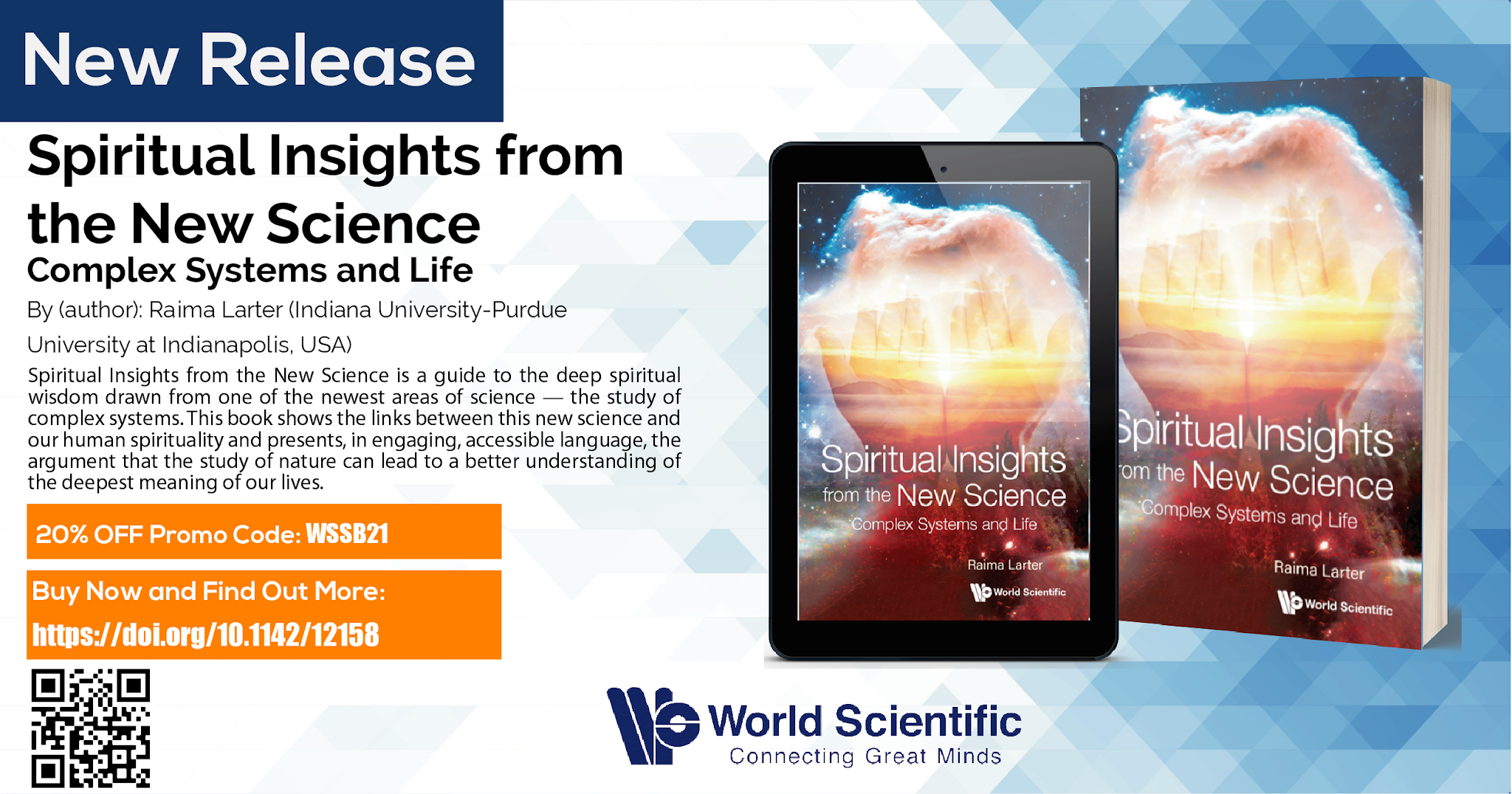 My latest book, "Spiritual Insights from the New Science: Complex Systems and Life," has just been published by World Scientific Publishing. Order your copy today, and please leave a review on Amazon and/or Goodreads after you've read it. Books can be ordered directly from the publisher, on Amazon, Barnes & Noble, or from your favorite local bookshop. Please spread the word!
