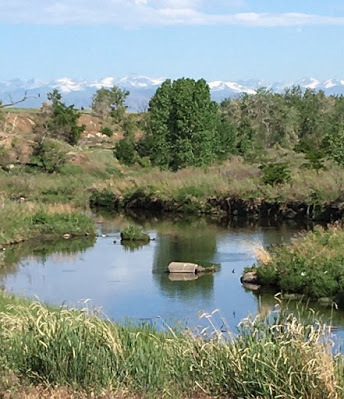 I have lots more photos, but no matter how many I take, they don't totally capture the place--the sharp scent of the willows near the water, the rustle of the wind in the tree branches, a constant gurgle from the creek as the water tumbles over stones, and the bird song. So many birds: redwing blackbirds, meadowlark, and killdeer in the long grass and, on the water, ducks and a pair of egrets.