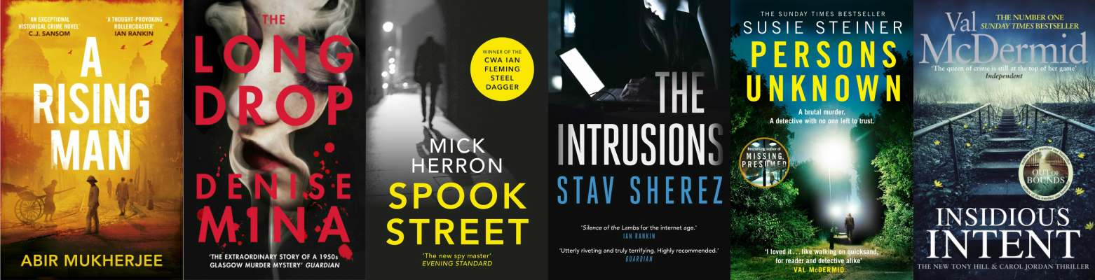 Mick Herron, Spook StreetVal McDermid, Insidious IntentDenise Mina, The Long DropAbir Mukherjee, A Rising ManStav Sherez, The IntrusionsSusie Steiner, Persons UnknownVal McDermid, Susie Steiner, and Mick Herron return as contenders after being shortlisted in 2017, the year Chris Brookmyre took the winning accolade.