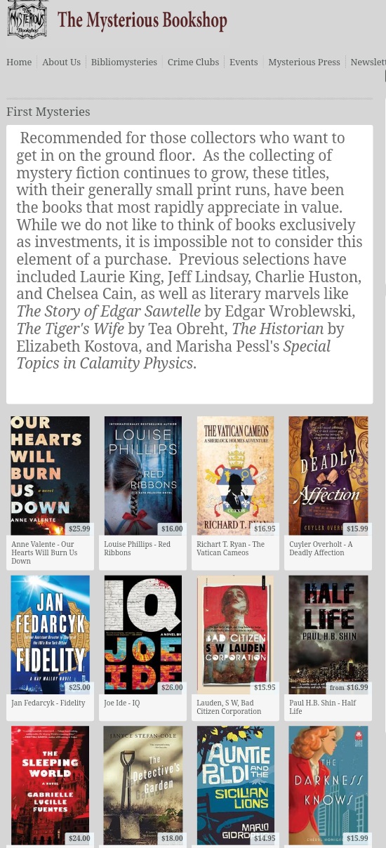 I am totally charmed to see RED RIBBONS included in The Mysterious Bookshop's recommended first Mysteries for collectors.....Visit here for full list of titles.