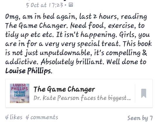 "Louise Phillips's third book Last Kiss was so impressive I wondered if she would be able to match it with her fourth. I needn't have worried! The Game Changer presents a carefully woven, intricate storyline that is chilling in its realism. Phillips does an excellent job of progressing the personal story of her recurring main character, Kate Pearson, without compromising the detail of the crimes being solved, and while interlinking them in a way that is not contrived, but adds to the mystery. This book tells the story from the points of view of many different characters - so many, in fact, that it would be easy to loose track if Phillips had not done such a masterful job of writing individual voices and linking all the characters together in an explosive climax. I definitely recommend this book but not just for fans of crime. Anyone interested in psychology, cults and a good mystery (I thought I'd solved it many times throughout the book, but was mistaken every time) will find The Game Changer unputdownable."