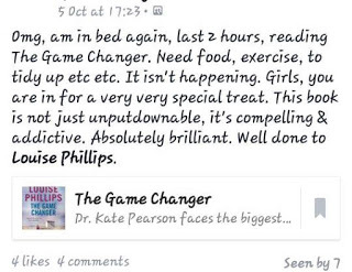 Thanks to everyone who has sent messages about THE GAME CHANGER......it really does the writing heart good, and I have to say, this one from a member of a book club this morning really made me smile....