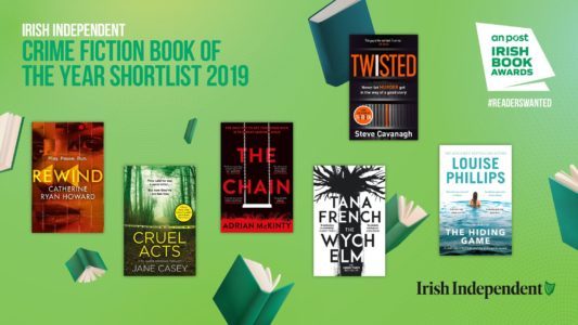 Rewind – Catherine Ryan Howard (Corvus)Cruel Acts – Jane Casey (HarperFiction)The Chain – Adrian McKinty (Orion)Twisted – Steve Cavanagh (Orion)The Wych Elm – Tana French (Viking)The Hiding Game – Louise Phillips (Hachette Ireland)