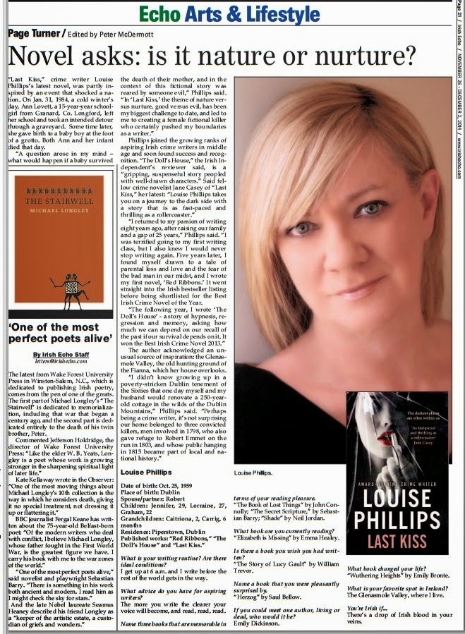 So it's looking like THE IRISH ECHO in New York, (the oldest Irish American newspaper with circulation in over 50 states) will be doing a feature on Louise Phillips/LAST KISS very shortly..so watch this space - will keep you posted!