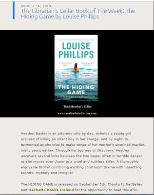 Thank you so much to The Librarian's Cellar for choosing THE HIDING GAME as their book of the week!!