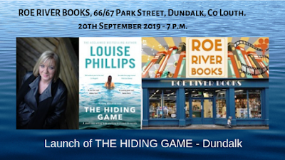 Another date for the diary - Join me at Roe River Books, 66/67 Park Street Dundalk on the 20th September at 7 p.m. for the Dundalk launch of THE HIDING GAME!