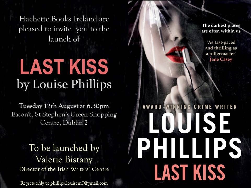 I'm absolutely delighted to announce that the lovely Valerie Bistany, Director of the Irish Writers' Centre, will be launching LAST KISS in Easons, St Stephen's Green Shopping Centre, on the 12th August at 6.30!! More details to follow....