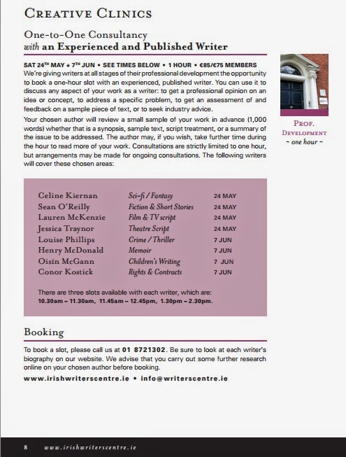 One-to-One Creative Clinic at Irish Writers Centre for CRIME/THRILLER writing for the 7th June is now BOOKED OUT! However, I'll now be doing a second day on the 24th May-but there are only 2 places left! Phone 01 8721302 to book! #earlybird