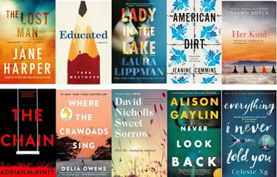 The Lost Man - Jane HarperEducated - Tara WestoverLady in the Lake - Laura LippmanAmerican Dirt - Jeanine CumminsHer Kind - Niamh BoyceThe Chain - Adrian McKintyWhere the Crawdads Sing - Delia OwensSweet Sorrow - David NichollsNever Look Back - Alison GaylinEverything I Never Told You - Celeste Ng