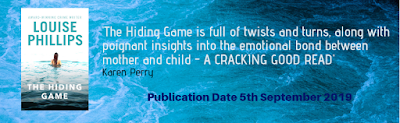 As the publishing date of Sept 5th for THE HIDING GAME gets ever closer, the nerves are starting to set in...but I am so thrilled with these words from Karen Perry Author....