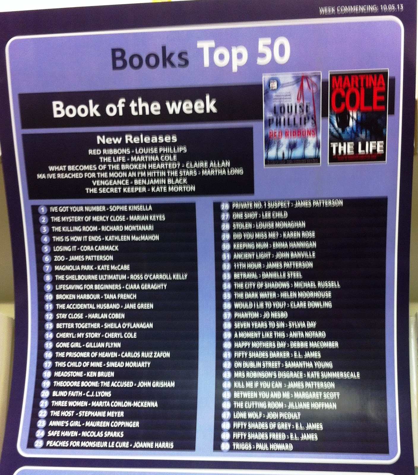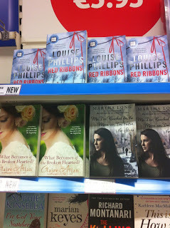 Window Display LahinchAfter a full week of RED RIBBONS in bookstores and supermarkets nationwide, it got to number 12 in the Mass Paperback Sales Market in Ireland. Not quite the Top Ten, but I'm a happy camper!!