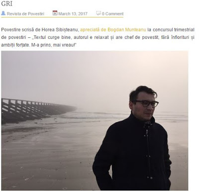 Mi-ar placea sa scriu mai mult. Insa inspiratia loveste atunci cand nu te astepti. O intamplare banala iti atrage atentia si iti aduce aminte de ceva. De acolo, creste o idee si o pui pe pagina. Asa a aparut Gri. Sunt sigur ca textul asta o sa fie interpretat in toate felurile, dar nu imi pasa. Ceea ce nu intelege multa lume e ca fictiunea e fictiune si nu conteaza cat de mult e inspirata din povesti reale. De unde ne desprindem de realitate si "fabulam" e secretul nostru.Am scris un text intr-o noapte. Vedeam gri in fata ochilor. L-am dat unei prietene sa il citeasca si mi-a zis ca e foarte fain. L-am trimis undeva, unde mai trimisesem. Nu am primit niciun raspuns. Insa la petrecerea loc am primit un email de la Rev de Pov, acolo trimisesem alt text. Textul meu era prea lung. Ori il scurtam, ori trimiteam alceva. L-am trimis pe asta.Ieri am primit un mail care spunea ca au fost publicati castigatorii concrusului trimestial de povestiri. Nu scria ca eu sunt printre castigatori, ci doar ca acestia sunt anuntati AICI. Va spun sincer ca imi doream sa castig. Nu pentru palmaresul meu ci pentru premiu. Invitatie la cursul Creative writing Sundays. Mereu mi-a placut sa fac un curs de scris. Pentru ca nu sunt scolit in acest domeniu. Am deschis linkul sa vad cine sunt norocosii castigatori, si nu mi-a venit sa cred ca eram si eu acolo.Gri (Horea Sibișteanu) - O știre de pe facebook (RIP Irina în descriere) îi trezește unui tip amintiri din facultate. Textul curge bine, autorul e relaxat și are chef de povestit, fără înflorituri și ambiții forțate. M-a prins, mai vreau!