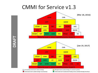 Another really useful part of this exercise was the impact it had on our strategy moving forward. The CMMI informal assessment made us realize that we were focusing on things in the wrong order. The visual analogy of a pyramid structure helped us realize that we needed to focus more of our efforts on completing the base of the pyramid, things like consistent Service Delivery (SD), before trying to develop a comprehensive Risk Management (RSKM) plan that was higher up.