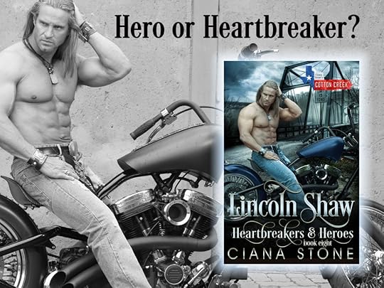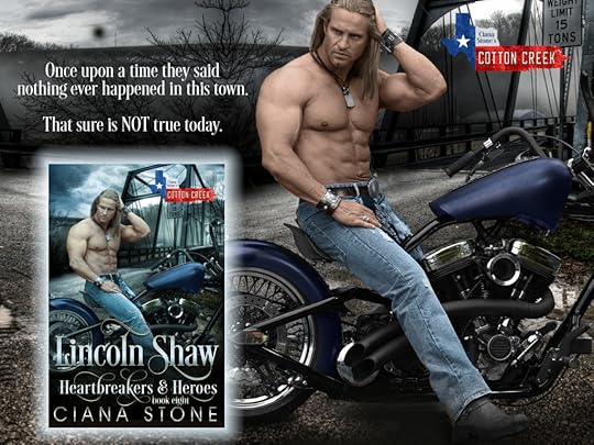 Title: LINCOLN SHAWAuthor: Ciana Stone Genre: MC Romance About Lincoln Shaw: Book 8 in the Heartbreakers & Heroes series and part of Ciana's Cotton Creek Saga He doesn't care if both his brothers are both married, with families and happy as bugs in a rug. Or that most of his friends are getting hitched. Settling down might be for them but it's definitely not in the cards for Lincoln Shaw. He enjoys his freedom and women way too much for that. Nope, give him a different woman--or three-- every night and he's just fine. Then, why the heck does a pole dancer with violet eyes who calls him Thor have him thinking that settling down might not be so bad after all? Get Your Copy Today: Amazon