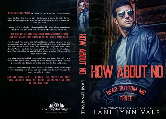 Title: HOW ABOUT NOSeries: Bear Bottom MCAuthor: Lani Lynn ValeGenre: Romantic Suspense Release: November 6Photographer: Furious PhotogModel: Wes HollandAbout HOW ABOUT NOWade had everything he could ever want in life...then he lost it. Now, his life—his forever girl—is living in a house he built for her while he’s struggling to move on and find meaning where there isn’t any to be found. Landry Hill was his girl. his everything. His high school sweetheart. His first kiss. His first and only love. His old lady and wife Then one day he does something monumentally stupid. And she walks away knowing she’ll never come back. Fast forward five years, and he’s still just as in love with her now as he was when she left. The only problem is that she’s moved on with her life, found a new man, and seemingly forgotten him. Then there’s Wade—stuck in the same awful place where she abandoned him. The only thing he has left is his job as a police office and the Bear Bottom MC. Just when they both think things can’t get any worse, life kicks them both in the teeth, and Landry finds out really quick that the only person she can depend on is the one that let her walk away. With understanding comes a deal. One that Landry has no hope of ever breaking free from, and one Wade will do everything in his power to make a reality. But one thing is still certain. The force that split them apart is still out there. And there’s no hope of escaping fate.