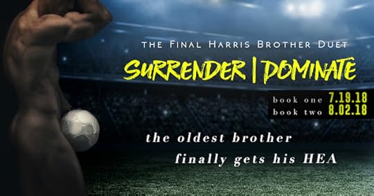 Surrender is part one of The Final Harris Brother Duet and concludes with Dominate. The Final Harris Brother Duet reads great as a duo, but to maximize enjoyment, check out the first three brothers’ books in Challenge, Endurance, and Keeper.