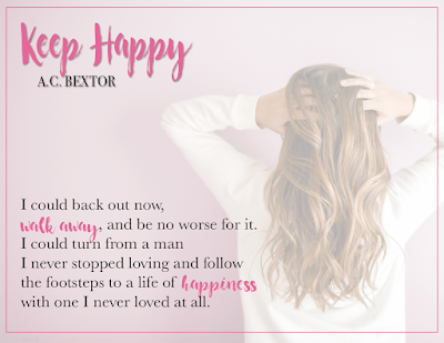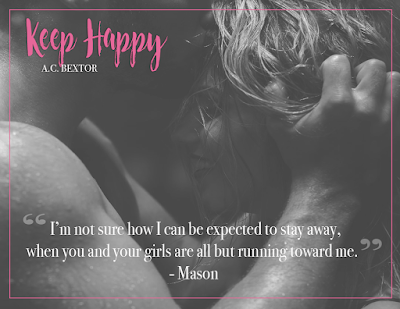 Title: Keep HappyAuthor: A.C. BextorGenre: Contemporary Romance Release Date: May 14, 2018Cover Designer: Margeet Asselbergs of Rebel Edit And Design
