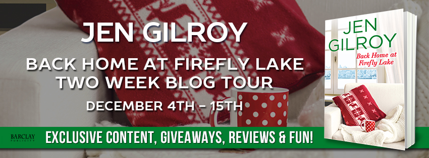 About Back Home at Firefly Lake (Firefly Lake #3):Title: Back Home at Firefly LakeAuthor: Jen GilroyGenre: Contemporary Romance / Women’s FictionRelease Date: December 5, 2017Publisher: Forever – Grand Central PublishingSeries: Firefly LakePrint ISBN: 9781455569618Digital ISBN: 9781455566938